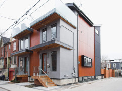Located in the trendy area of Leslieville, this bungalow house was once occupied by a hoarder. The neighbors will be thrilled when the stench of old newspapers coming from this old decrepit house will be replaced by 2 modern day semi-detached homes. The architecture is carefully thought out to match the front facade to the neighboring Victorian homes. With modern and high end finishes, the 2300 square feet of living space will be equipped with 3 bedrooms and 4 washrooms. Visit the following link for a history of this street and its wonderful community.